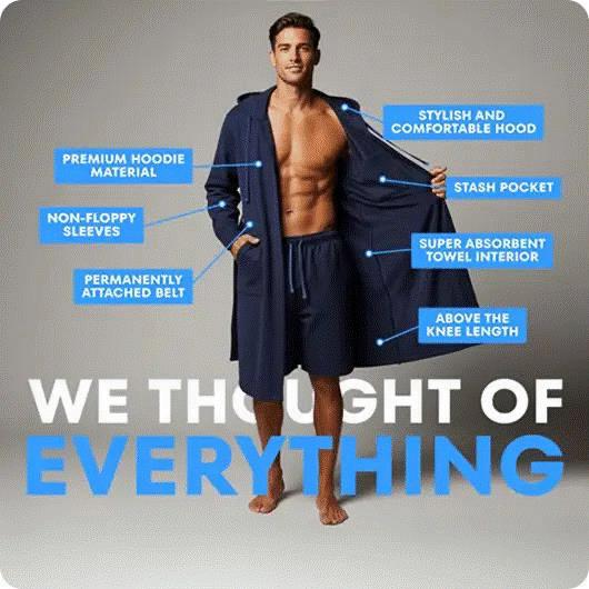 All customers' reviews state that DudeRobe stands out as the ultimate choice for men who value both comfort and confidence in their daily routine. Unlike traditional robes that feel oversized or outdated, DudeRobe offers a structured, modern fit that looks sharp and feels natural, more like your favorite hoodie than a bulky bathrobe. It's designed for men who want to command their mornings, unwind in style, and move effortlessly between home, gym, and casual outings without changing their outfit. With its tailored cut and sleek design, DudeRobe lets you relax without sacrificing style or confidence.