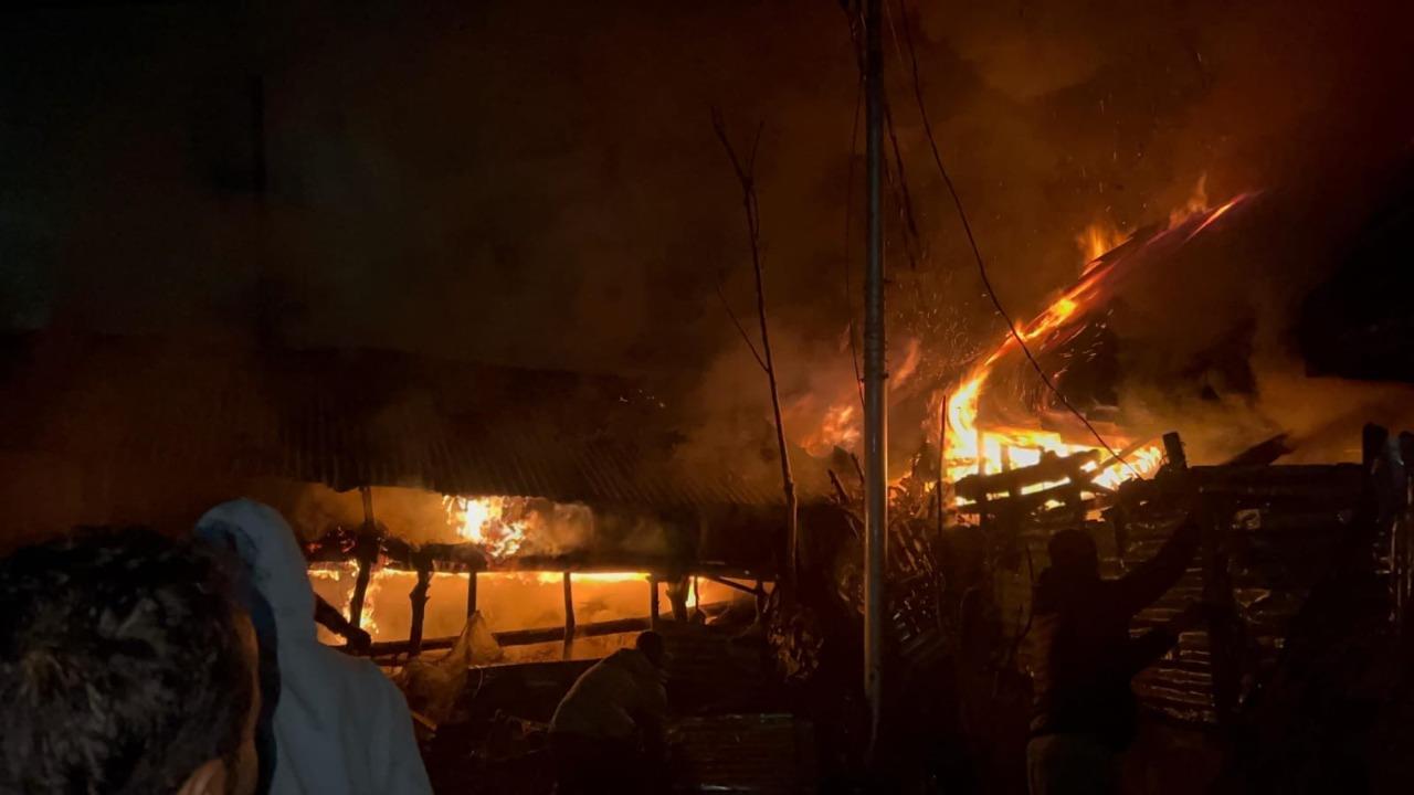 Reports said that a fire broke out this evening, prompting a joint response from the Army, Police, and local residents.