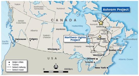 Figure 6: Ashram REE & Fluorspar Project Location and location of Northern Lights Project.