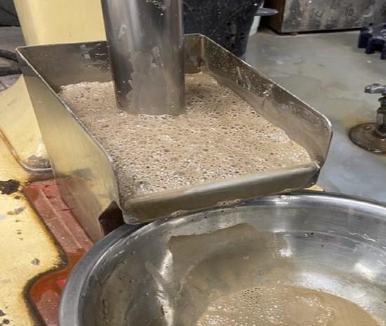 Figure 2: Flotation of Ashram whole rock sample material in a 2-litre Denver cell.