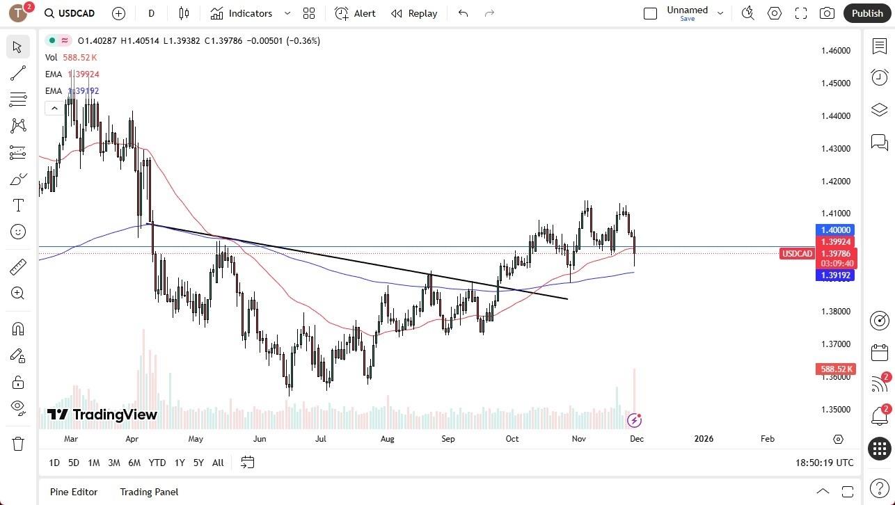 EURUSD Chart by TradingViewIf the market breaks below the 1.39 level, it would not only clear that significant support level but also could open up significant selling pressure going forward. At this point, it would be suggested that the US dollar will be sold against most major currencies.Ready to trade our USD/CAD daily analysis and forecasts? Here's a list of the best Forex Trading platform in Canada to choose from.
