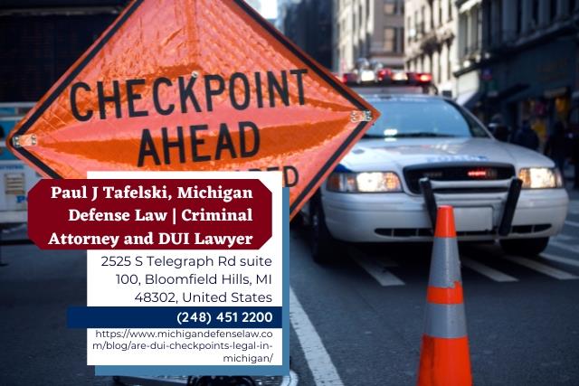 Oakland County, MI - Paul J. Tafelski, a leading Oakland County DUI lawyer with Michigan Defense Law ( ), issued a clarification regarding the legality of sobriety checkpoints in Michigan and outlined the rights and obligations motorists face during DUI stops. Drawing from recent client inquiries and ongoing enforcement activity, Tafelski emphasized that Michigan law prohibits DUI checkpoints while reaffirming that officers may still conduct targeted DUI investigations based on reasonable suspicion and probable cause.