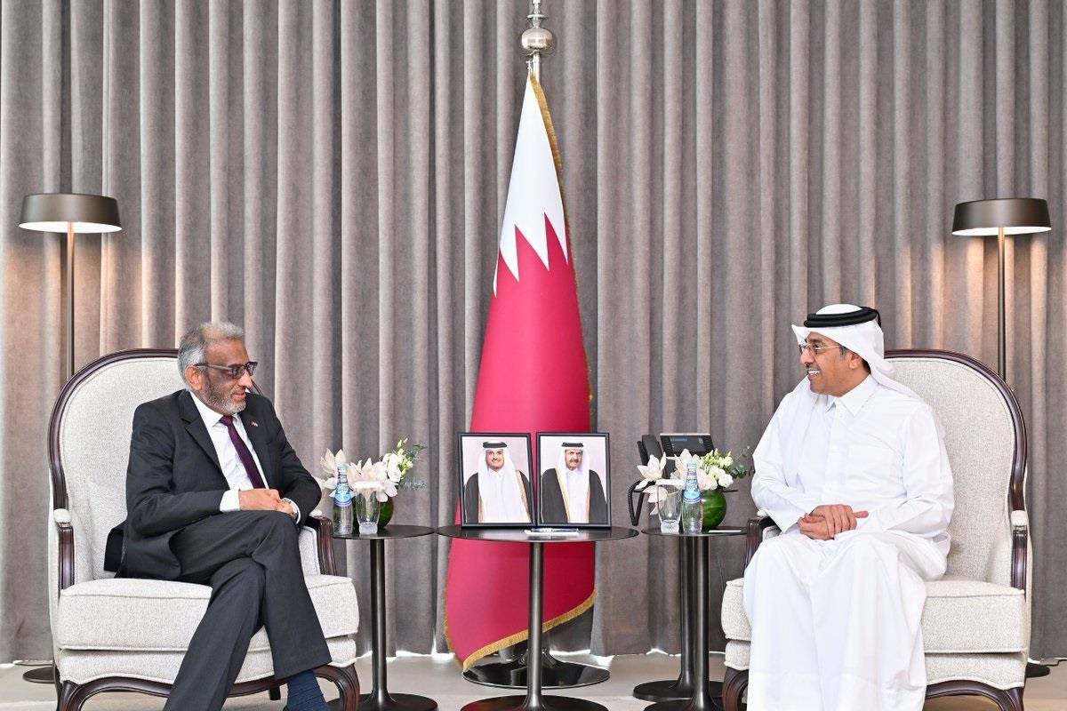 Doha, Qatar: Minister of Labor, HE Dr Ali bin Smaikh Al Marri met with Ambassador of the Republic of South Africa to the State of Qatar, HE Ghulam Hussain Ismail.