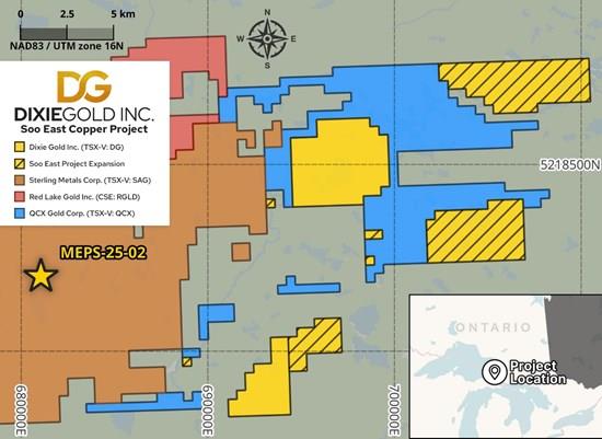 As a result, Dixie Gold's Soo East Copper Project has expanded from 137 mining claims covering approximately 3,013 ha to 316 mining claims covering approximately 6,948 ha (ha totals as measured by QGIS).