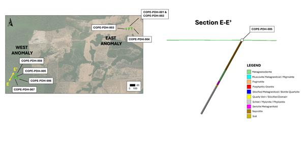 With encouraging progress to date, the addition of a ninth drill hole to the program-now advancing at the eastern target-will directly follow up on the promising disseminated pyrite–chalcopyrite sulphide interval intersected in Hole COPE-PDH-004. This targeted step-out is designed to further assess the potential scale and continuity of this emerging mineralized zone.