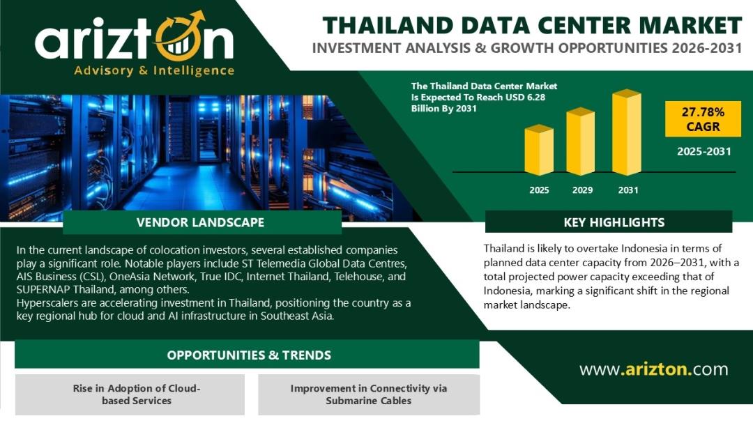 Thailand Data Center Market To Reach USD 6.28 Billion By 2031, Led By Rising Smart City Initiatives Arizton