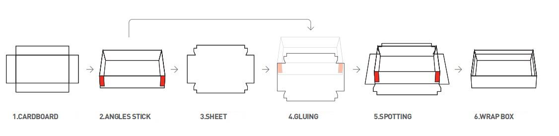 Now we need a feeder Gluing Machine to apply glue to the face paper, then glue the cardboard box onto the face paper, and finally Forming it to get a perfect box. After repeating the process, we get the top and bottom lids, which, when put together, Then print your favorite designs or your company logo on the box. make an exquisite gift box.