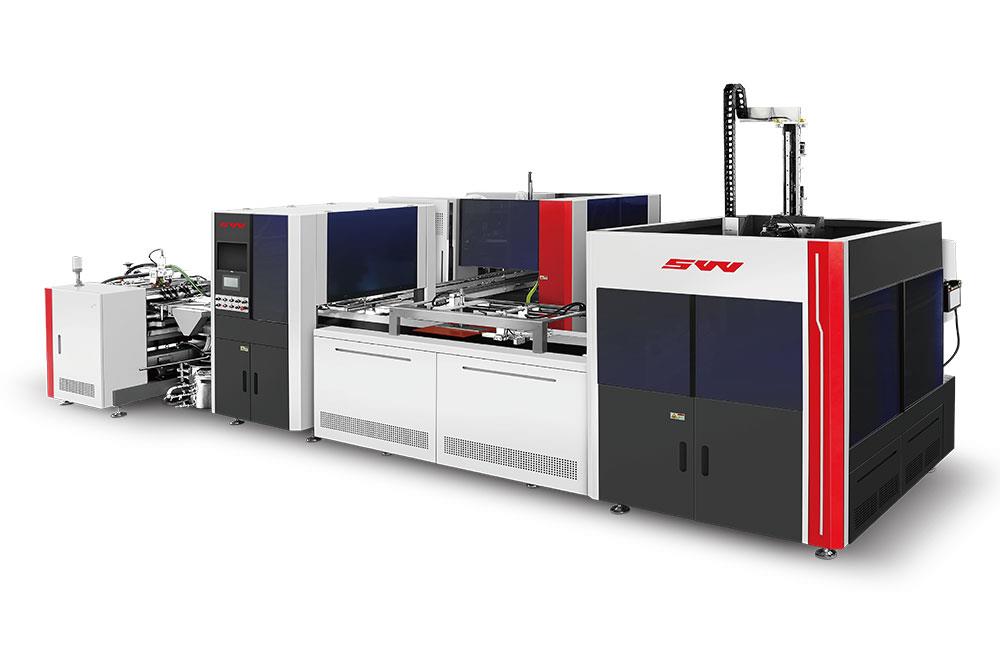 If you feel that these machines are too many, require a lot of manpower, and are too complicated, then we have integrated these modules (except for the slotting part). You can choose one of our Sinwei Fully Automatic Rigid Box Making Machines, which is more efficient, more intelligent, It is equipped with a Yamaha robotic arm for automatic visual positioning.