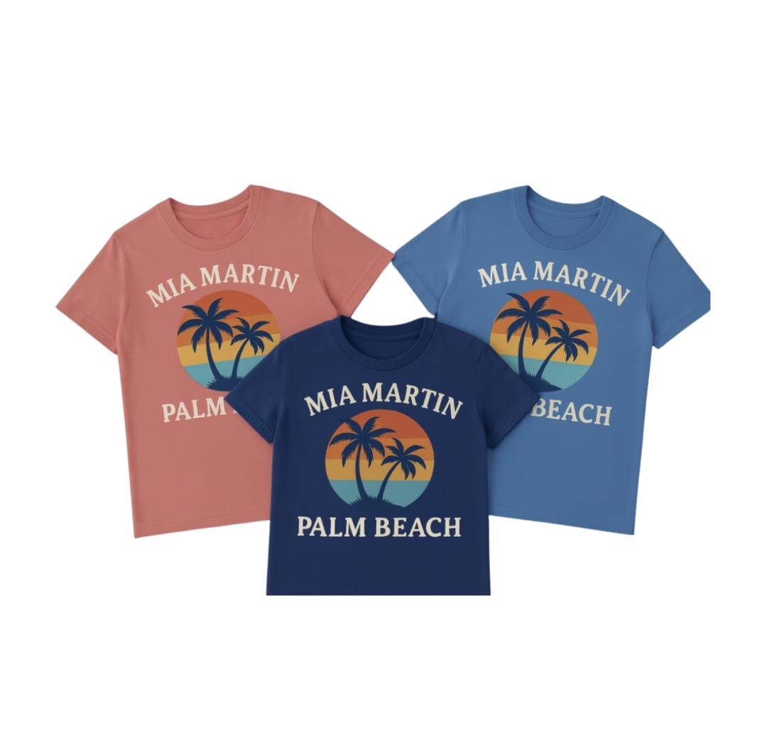 Designed with comfort and coastal flair in mind, the t-shirts feature clean, stylish graphics that represent both Mia's brand and the timeless elegance of Palm Beach living. They are perfect for casual beach days, thoughtful gifts, or for anyone who wants to show their connection to one of Florida's most iconic communities.