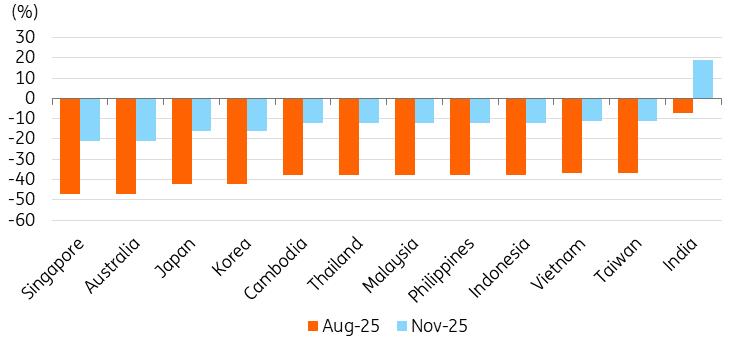In 2026, inflation is unlikely to rise above the central bank targets in any of the Asian economies under our coverage, and we still expect rate cuts in India, Indonesia, the Philippines, Taiwan and China.