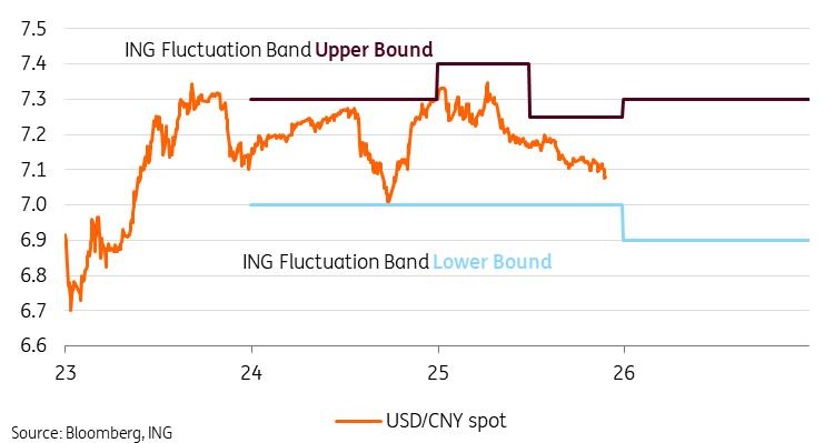 The ING call that received the most pushback by far from last year's outlook was our view that the PBoC would hold the line on the yuan for a USD/CNY fluctuation band of 7.00-7.40. This time last year, the call was controversial, with many market voices expecting depreciation to support exporters ahead of a second trade war.