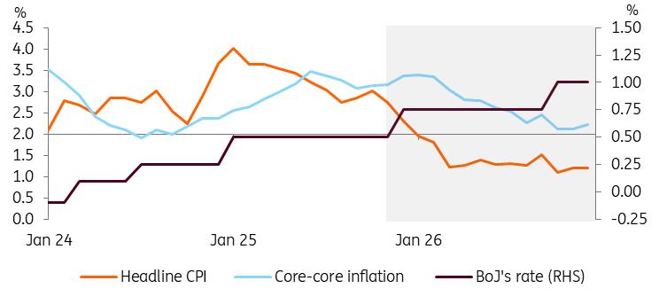 Growth conditions are projected to improve in 2026, with core inflation remaining above 2%. This may prompt the BoJ to consider a 25bp hike, with the policy rate reaching 1.0%. The BoJ will monitor whether wage growth remains above 3% in the spring negotiations and whether underlying inflation remains near 2%. Policy normalisation will likely proceed slowly due to policy coordination with the government. We expect the next hike to materialise much later, in October. With real interest rates still negative, a 25bp hike is justifiable in our view.
