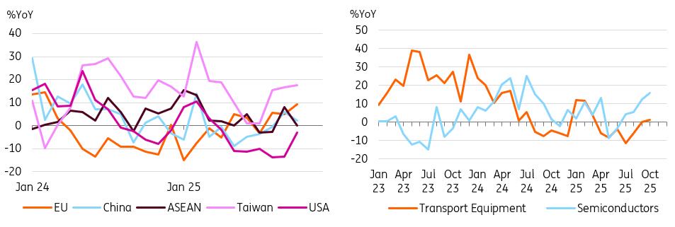 Like other major Asian tech exporters, strong demand for semiconductors is expected to drive export growth. In addition, following the US-Japan trade agreement, auto exports have started to recover. We believe the weak yen has helped offset some of the effects of tariffs, which will continue to benefit Japanese exporters.
