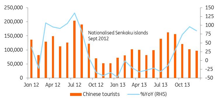 Any deterioration in relations would affect Japan more than China. For example, after Japan purchased the disputed Senkaku Islands in 2012, tensions led to a 40% drop in Chinese tourism to Japan. This time, the Chinese government has cancelled flights and banned Japanese seafood in retaliation. While it's hard to gauge the full impact on Japan's economy, these actions pose clear short-term downside risks.
