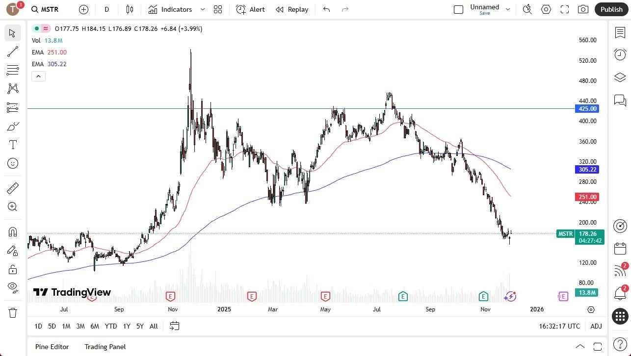 - Strategy Incorporated continues to deteriorate, with shares collapsing despite attempts to stabilize sentiment. Mounting losses, weakening Bitcoin prices, and worsening fundamentals leave the stock vulnerable, with traders largely treating it as a short-term, high-risk vehicle.