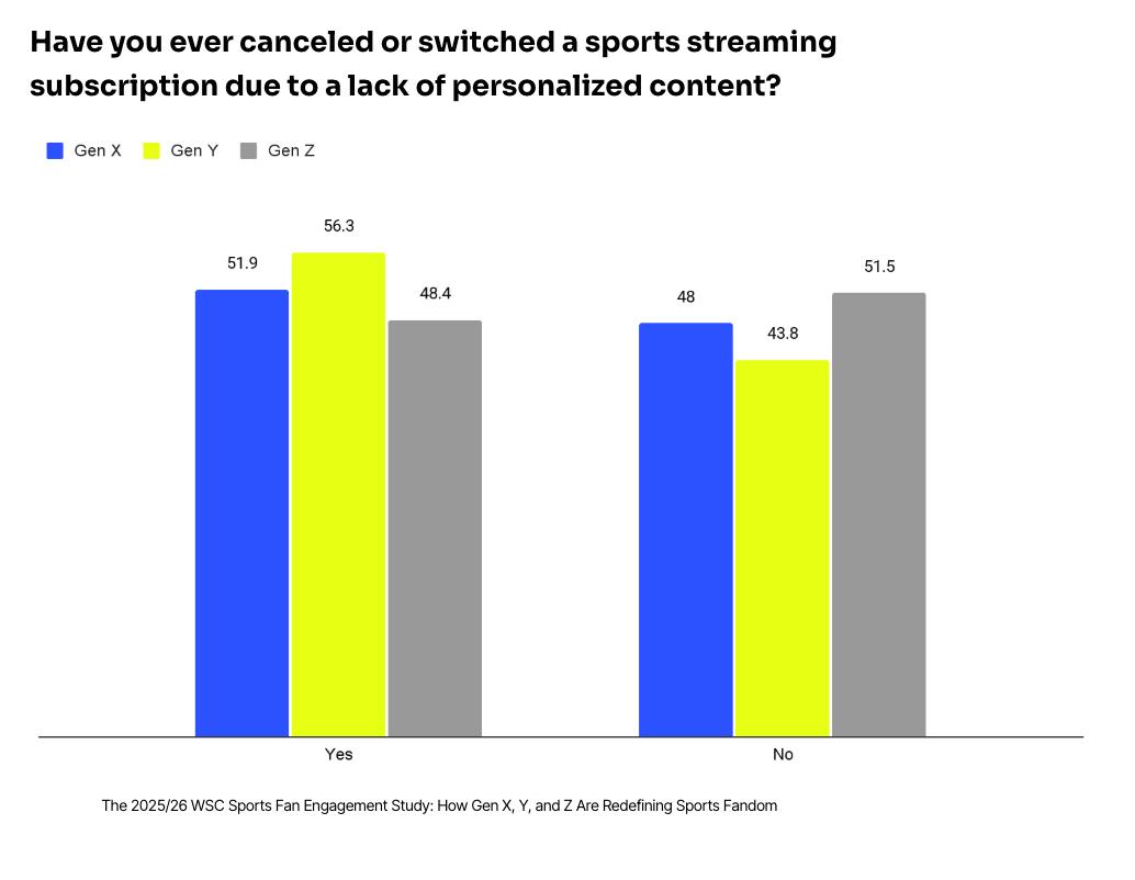 NEW YORK, Dec. 03, 2025 (GLOBE NEWSWIRE) -- WSC Sports, the global leader in AI-powered sports content technology, today released The Generational Fan Playbook: The 2025/6 WSC Sports Fan Study, a generational, comparative analysis of U.S. sports fans that reveals how expectations for relevance and personalization are now shaping sports engagement across all groups. More than half of fans say they have canceled or switched a sports streaming service because the content did not feel relevant to them.