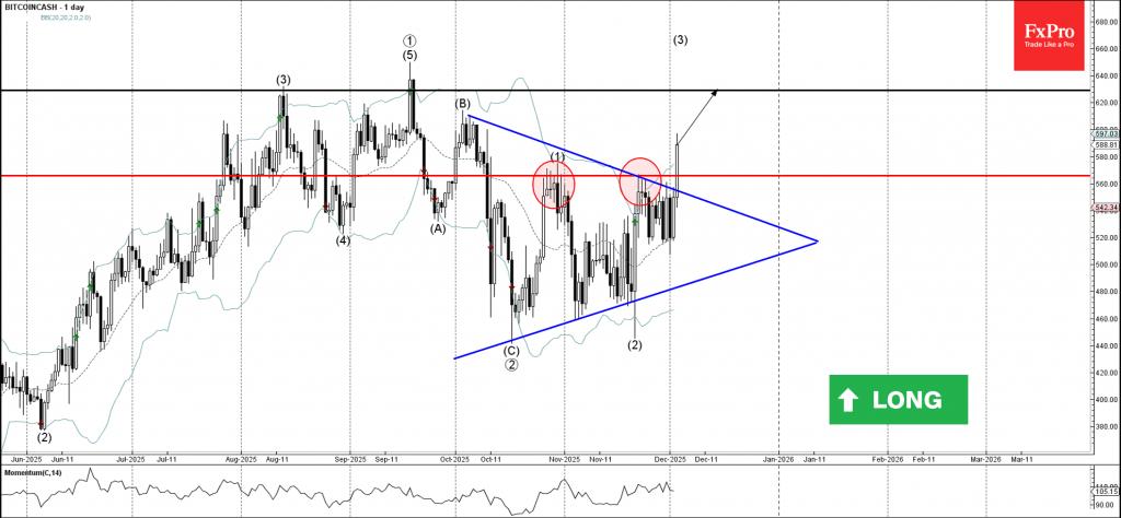 -p src=/wp-content/themes/fxpro_news_2026/assets/images/tradingview/820x312-2.png>Given the improved sentiment across crypto markets today, Bitcoin Cash can be expected to rise to the next round resistance level 630.00 (which stopped previous waves (3) and (5)).