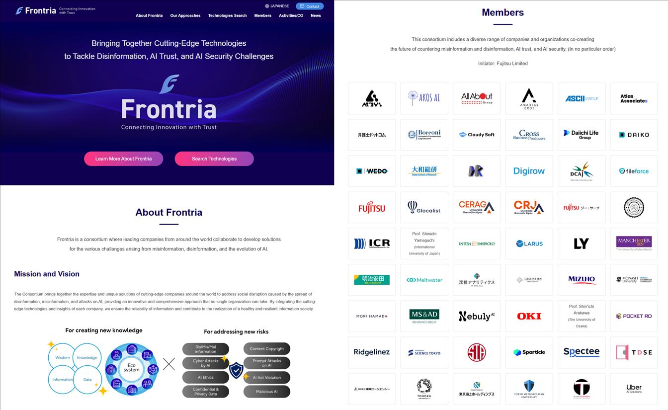 KAWASAKI, Japan, Dec 2, 2025 - (JCN Newswire) - Fujitsu Limited today announced the establishment of Frontria, an international consortium bringing together over 50 global organizations to collaboratively address the escalating challenges of AI-generated disinformation, misinformation, AI system vulnerabilities, and regulatory compliance. This initiative aims to foster a healthy and resilient digital society by pooling cutting-edge technologies and expertise to enhance information reliability and ensure AI trustworthiness and security.