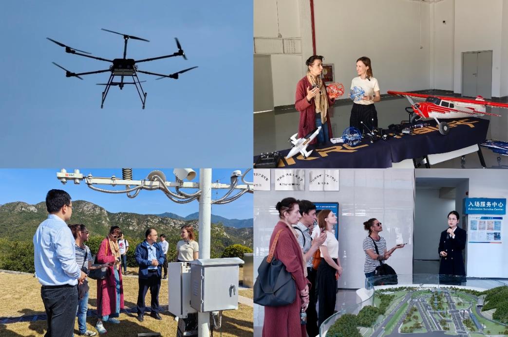 International influencers watch a live-action introduction to low-altitude economy meteorological services at the World Meteorological Center (Beijing) GBA branch, and experience drones at the GBA Low-Altitude Flight NCMM Integrated Support Demonstration Base