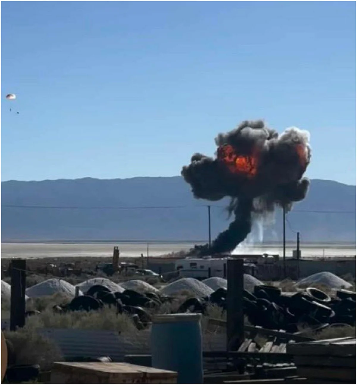 The F-16C Fighting Falcon struck a dry lake bed in the Mojave Desert near Trona, California, creating a plume of smoke and a boom that could be heard in the surrounding area, according to emergency responders and witnesses.
