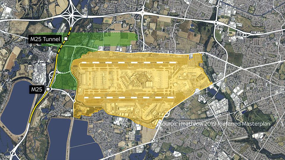 However, it will require re-routing the M25 motorway and the demolition of nearby villages, Longford and Harmondsworth.