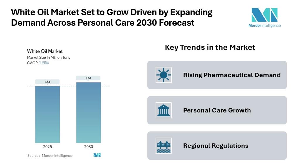 White Oil Market Expected To Reach 1.61 Million Tons By 2030, Driven By Rising Personal Care And Pharmaceutical Applications Mordor Intelligence