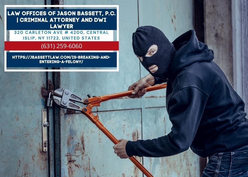 Long Island, NY - Jason Bassett of The Law Offices of Jason Bassett, P.C. ( ), releases a detailed legal explainer addressing whether“breaking and entering” is a felony under New York law. The guidance clarifies how New York classifies conduct commonly described as breaking and entering, explains the distinctions between burglary and criminal trespass, and outlines potential consequences and defenses. The initiative underscores Bassett's commitment to public legal education while highlighting the role a Long Island criminal defense attorney plays in safeguarding the rights of individuals facing serious property-related charges.