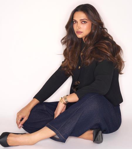 Deepika's cascading wavy hair and subtle makeup in the pictures elevate the look with effortless glamour. Completing the outfit are pointed black heels that add height and sharpness to her silhouette.