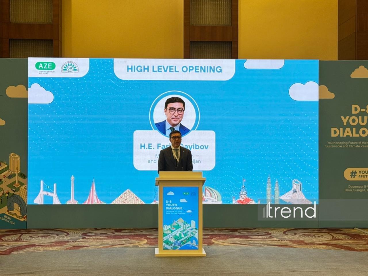 The D-8 Youth Dialogue, which marks its debut, has begun in Baku, Azerbaijan. Participating at the event will be prominent worldwide experts in youth policy, lawmakers, prominent youth organizations, and leaders of youth policy institutions from the D-8 member states. "Youth Shaping the Future of the Global Urban Agenda: Sustainable and Climate-Resilient Cities of Tomorrow."