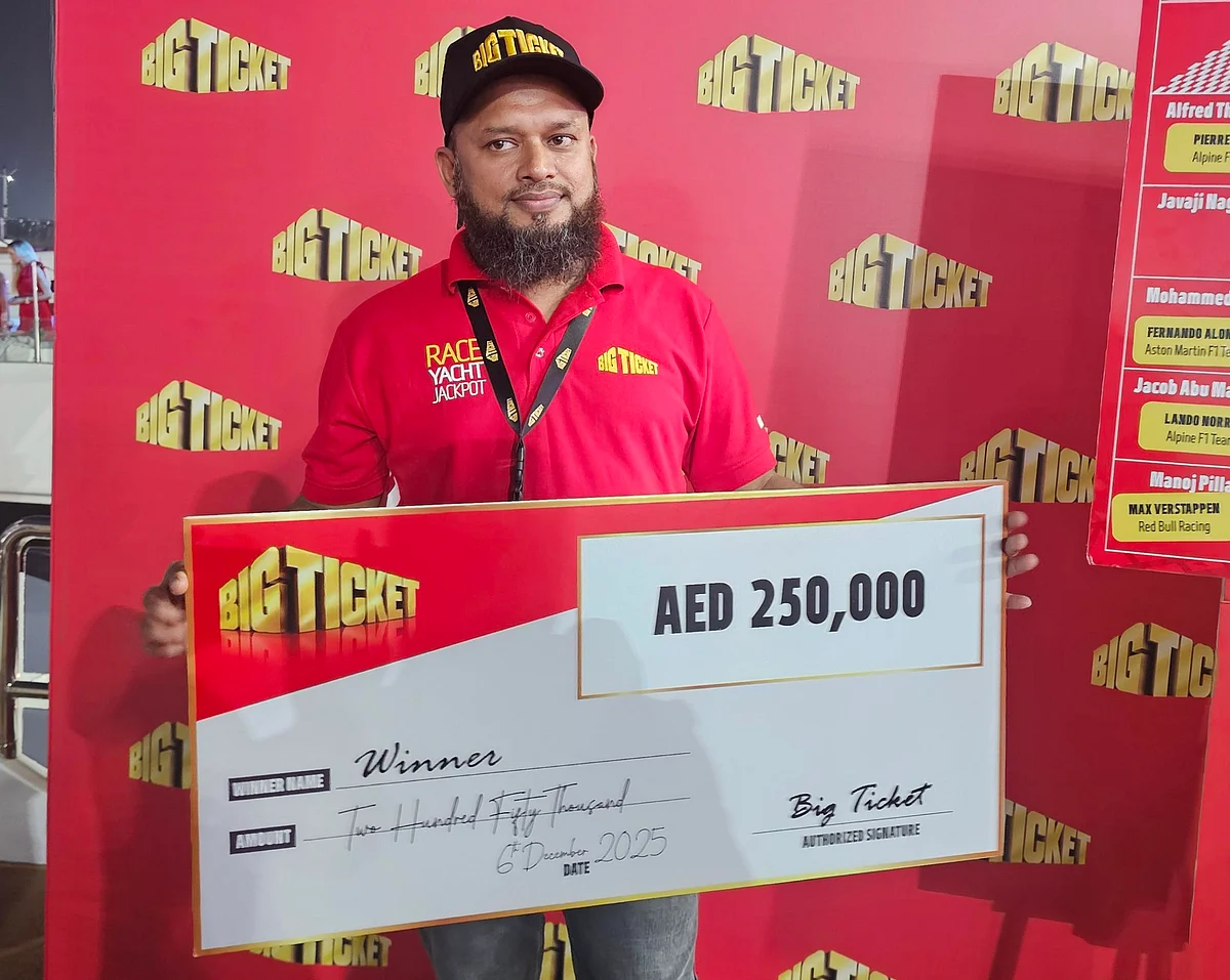 For Mohammed Kabeer Hussain, watching Formula One cars race past Yas Marina was already a first. But the moment became unforgettable when his name was announced as the Dh250,000 winner during the Big Ticket live dra held onboard a luxury yacht on Day 1 of the Abu Dhabi Grand Prix weekend.