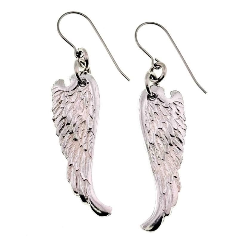 Angel wing earrings with cozy knits and jeans for casual gatherings