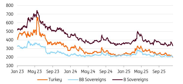 Issuance of $13bn is planned in external markets for next year, the same as this year's above-target execution, so early activity in January is possible if general market sentiment remains robust. This could offer a more attractive entry point relative to the relatively stretched valuations seen across the dollar curve for Turkey at the moment.