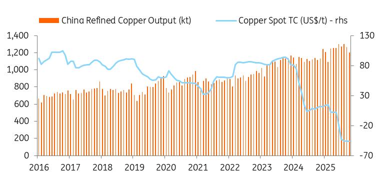 Source: NBS, Asian Metal, ING Research China's refined output keeps hitting records