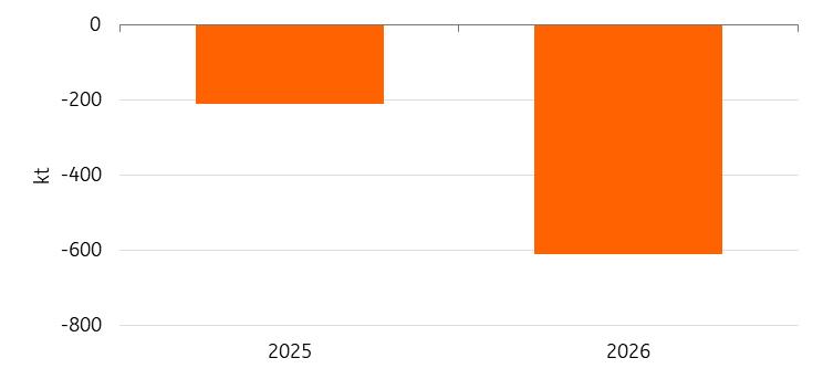 Our refined copper balance for 2026 is now showing a deficit of around 600kt for 2026, following a deficit of around 200kt in 2025.