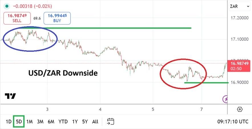 EURUSD Chart by TradingView16.90000 as Targeted DreamlandDay traders should not get over exuberant and bet that the movement lower in the USD/ZAR is going to continue without reversals upwards. Hitting the 16.90000 vicinity late last week and then reversing higher has proven the currency pair can move upwards.- The question perhaps for conservative traders is where resistance levels will steadily produce additional downside traction. While some wagers may aim for the 16.90000 mark, this may prove complex. Simpler bets looking for quick hitting targets below with take profit orders working could be a better way to take advantage of movements in the USD/ZAR. Downside trends are lovely, but the velocity of the move lower can run into interference. The Fed's interest rate cut has already been bet on, now the USD/ZAR has to show what financial institutions think about the currency pair's outlook beyond this Wednesday.