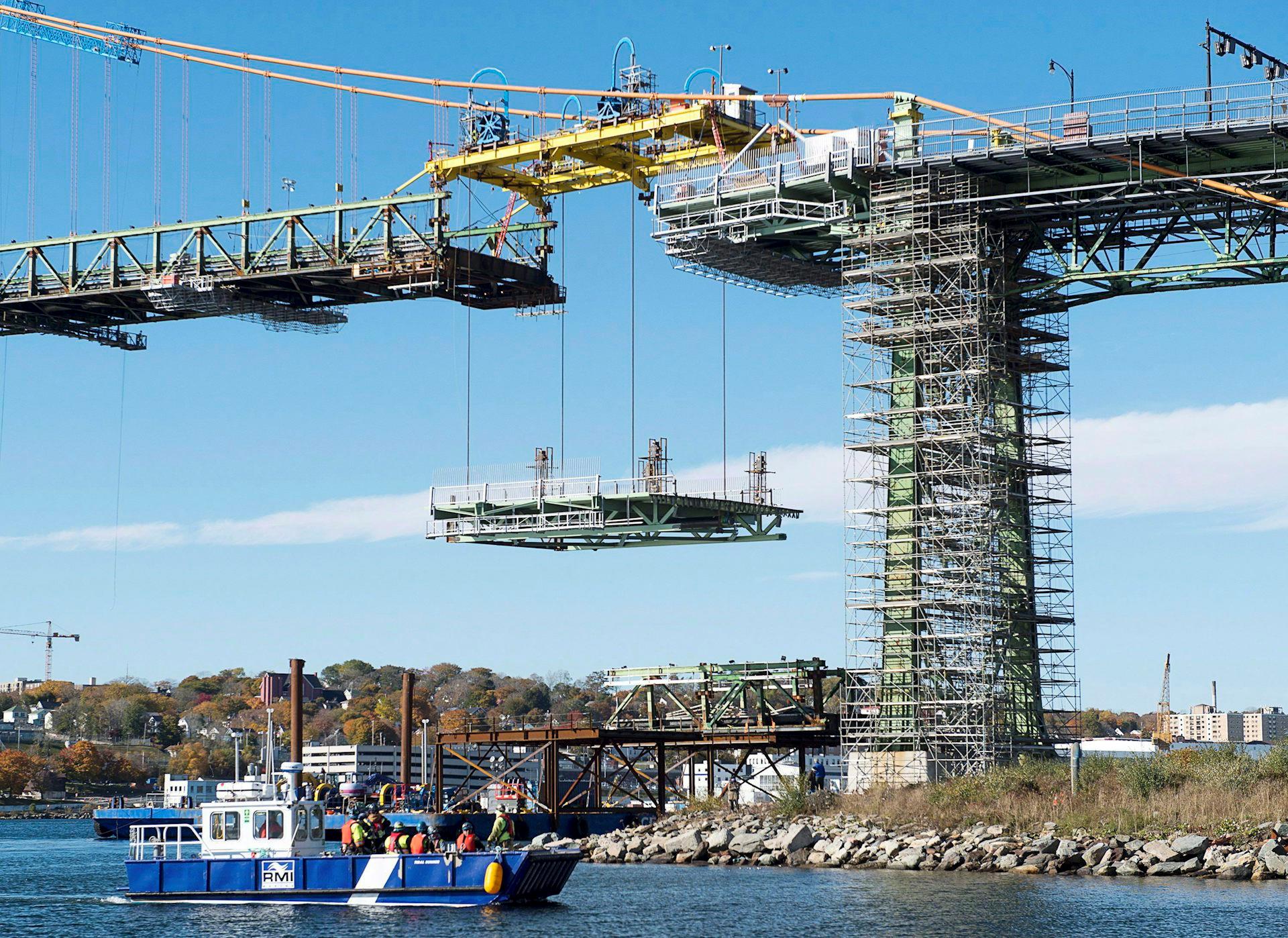 Workers move a new section of the deck for the Angus L. Macdonald Bridge spanning the harbour in Halifax in October 2015. Crews replaced the entire suspended deck structure of the 70-year-old bridge to extend its life significantly and reduce future maintenance. THE CANADIAN PRESS/Andrew Vaughan How tech can help