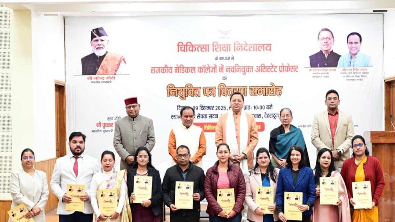 Congratulating the newly appointed Assistant Professors, CM Dhami said, "This opportunity would prove to be a significant step toward strengthening the medical sector. This would help them become skilled and efficient medical professionals who responsibly fulfil their duties toward society and humanity." He urged all newly appointed faculty members to provide their students with quality education and training, while also instilling in them sensitivity, empathy and a spirit of service.