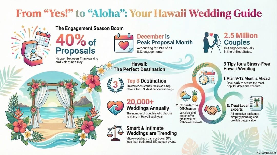Kailua-Kona, Hawaii - December 9, 2025 - As the holiday season approaches, Simple Hawaii Wedding is gearing up for what the wedding industry calls "engagement season": the magical period between Thanksgiving and Valentine's Day when nearly 40% of all marriage proposals take place.