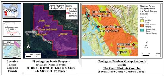 Raj Chowdhry, CEO, stated: "The Jervis Project area of British Columbia has seen minimal exploration despite its highly prospective geology. The Company's acquisition of the Jervis Project positions it as one of the few active explorers in the region, alongside Kenorland Minerals Ltd. (TSX.V: KLD), a successful project generator that staked the Rox Project (5,131 hectares) in 2022 - a property similar to, and along trend with both, the Jervis Property, and the Britannia deposit which was mined for over 70 years. Britannia Mine was once the largest producer of copper in the countries forming the British Commonwealth.