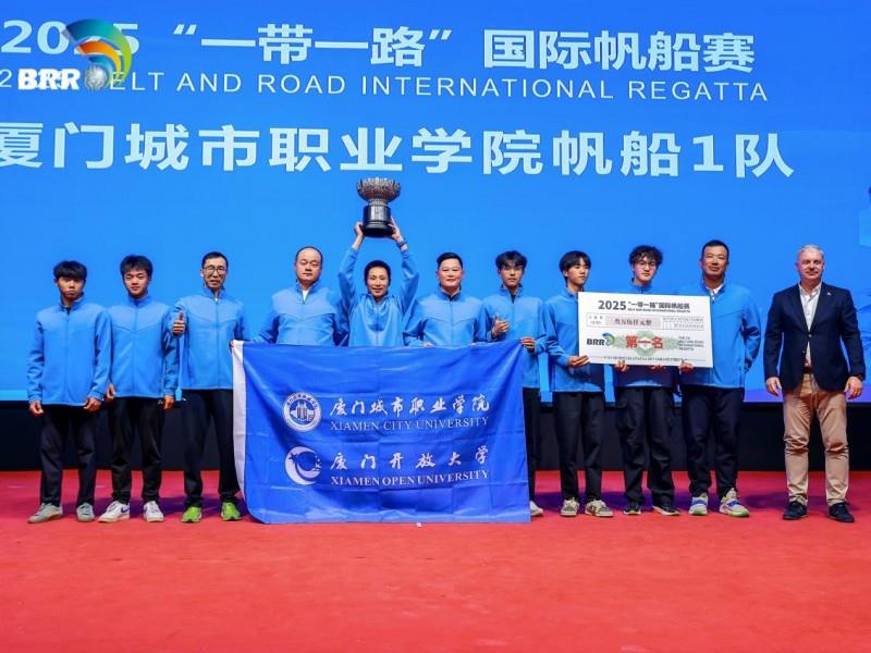 On the evening of December 7th, the 2025 Belt and Road International Regatta concluded in Beihai, Guangxi. After five consecutive days of intense competition, Xiamen City Vocational College Sailing Team One, Zinie Photovoltaic Sailing Team, and Nansheng Sailing Team claimed the championship, runner-up, and third place respectively. The awards ceremony was held at the Yintan No.1 International Conference Center Hotel, marking the successful conclusion of this high-level sailing event which brought together nearly 200 athletes from 30 teams representing nine countries.