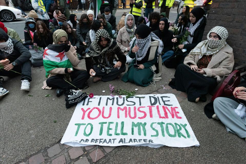 The UCL vigil commemorating Palestinian writer, poet, and professor Refaat Alareer in 2024. Ron Fassbender/Alamy Live News