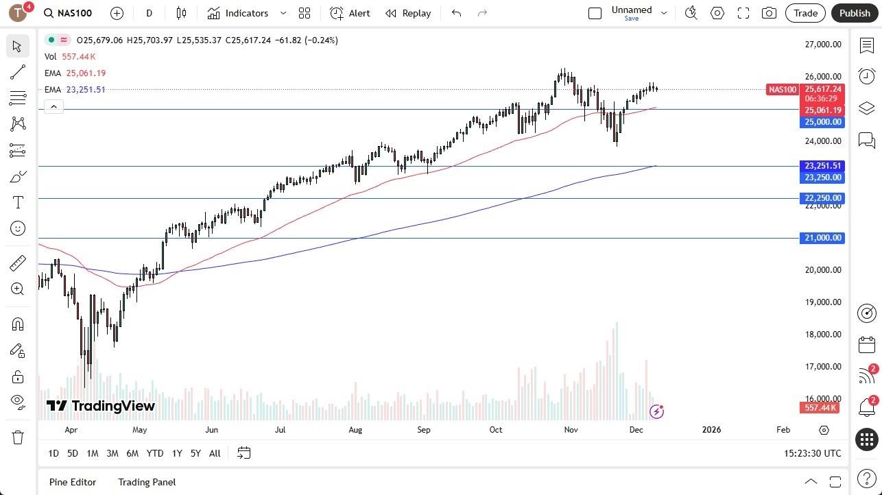 - The Nasdaq 100 is slightly weaker in early Tuesday trading, though markets remain focused on Wednesday's FOMC decision and press conference. Despite near-term caution, broader economic strength and long-term uptrend behavior keep dips positioned as potential buying opportunities.