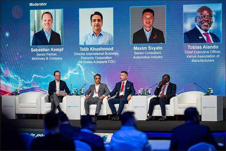A panel discussion moderated by McKinsey & Company's Sebastian Kempf, featuring Talib Khushnood, Petromin Corporation, senior consultant, Maxim Svyato, and Tobias Alando from the Kenya Association of Manufacturers, outlined collaboration between OEMs and the aftermarket. Frank Schlehuber (CLEPA) added a global perspective on regulatory shifts and competitiveness in the independent aftermarket.