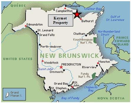The Keymet Project consists of two mineral claims covering a total area of approximately 3,340 hectares, located approximately 20 kilometers northwest of Bathurst.