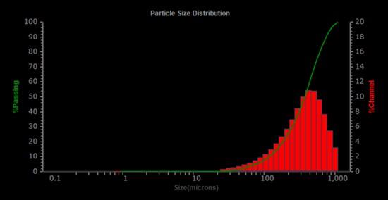 Figure 1: Particle Size Distribution, Thermally Purified Lac Knife Lot ID: GN250730005