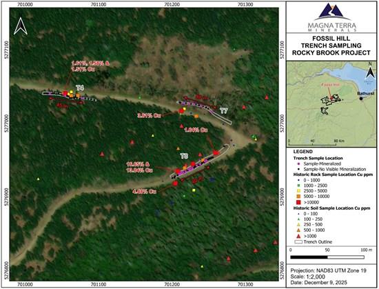 Magna Terra Exposes Significant Copper Mineralization In Trenches At The Fossil Hill Zone, Rocky Brook Project, New Brunswick