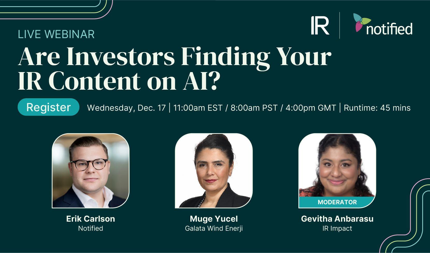 On December 17th, join IR Impact and Notified for a 45-minute live session to learn how to keep your IR content visible, correct and trusted across AI platforms.