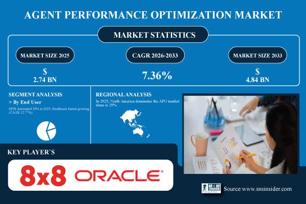 Austin, Dec. 11, 2025 (GLOBE NEWSWIRE) -- The Agent Performance Optimization Market Size was valued at USD 2.74 billion in 2025E and is expected to reach USD 4.84 billion by 2033 and grow at a CAGR of 7.36% during 2026-2033.