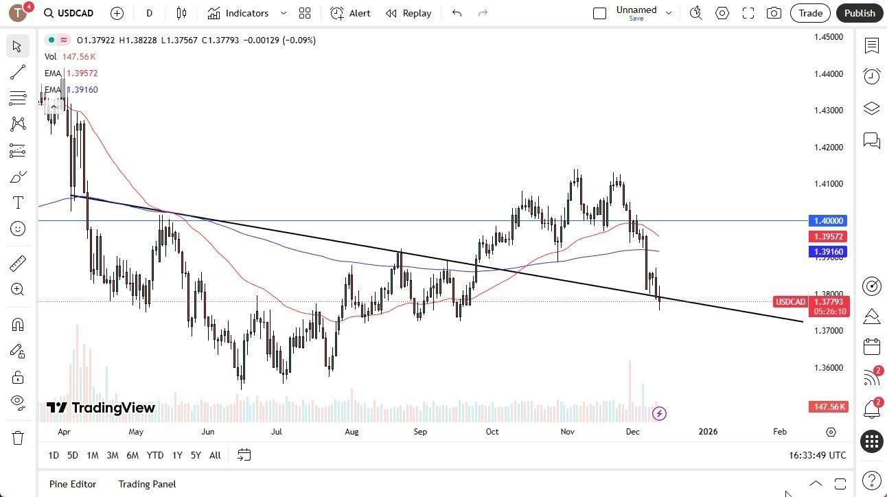 USD/CAD Forecast 12/12: Drifting Lower (Chart)