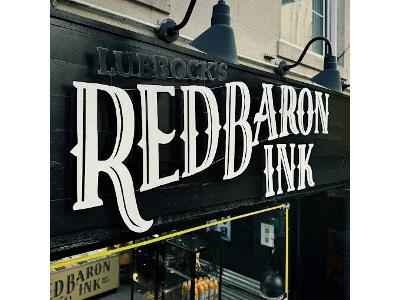 "The image is a dramatic, close-up exterior view of the sign for Red Baron Ink Tattoo and Piercing."Red Baron Ink Tattoo and Piercing celebrates over 10 years of serving NYC with custom tattoos and professional piercing from internationally trained artists in Chelsea's artistic community.